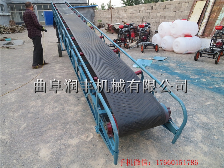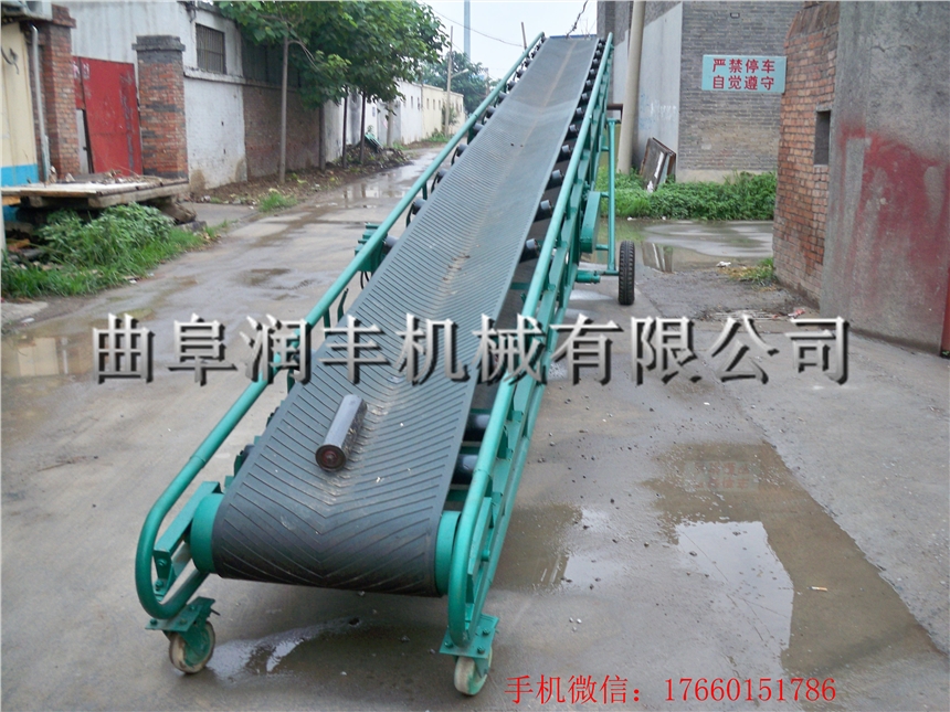 装车卸车用移动带升降皮带输送机不限制使用场地,皮带机下面带有轮子,可来回移动、是一种较方便 的装、卸车用的带式输送机,装卸小麦、玉米、大豆等散装、袋装等不规则物体,升降带移动代替了人工装卸车,提高了工作效率。 皮带输送机定做 输送机厂家 带式输送机