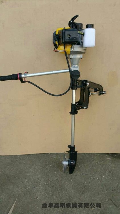 挂桨机顾名思义是指安装在船体(船舷)外侧的推进用发动机,通常悬挂于艉板的外侧,又称舷外机。多用于游艇等小体积船体,如江河上面的打渔船、橡皮艇等,常用于江、湖渔业密集地区。按其功率分为6马力、8马力、15马力、30马力不等的诸多型号,一般为二/四冲程汽油机,启动方式多为手动式,由操作者手持方向手柄掌握方向。传统柴油动力比较粗重,价格低廉,噪音及水域污染严重;二冲程船用动力偏重于价格经济实惠,动力强,结构简单;四冲程环保及噪音方面则比二冲程更为优越,油耗低,性能也更加持久可靠。