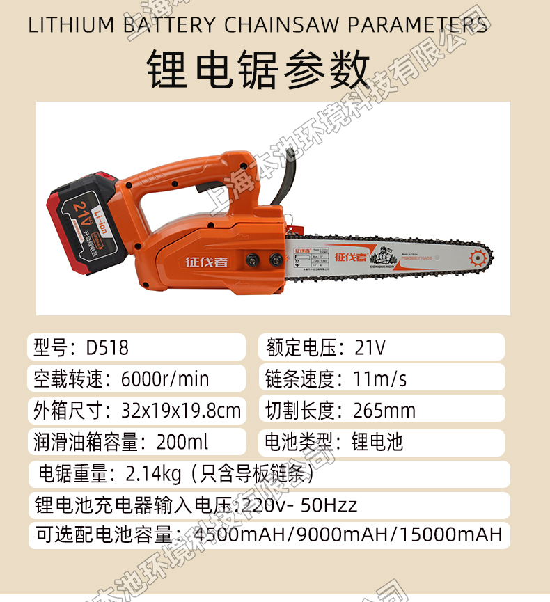 征伐者D518锂电锯单手手持式伐木锯园林大功率毛竹电锯森林修枝