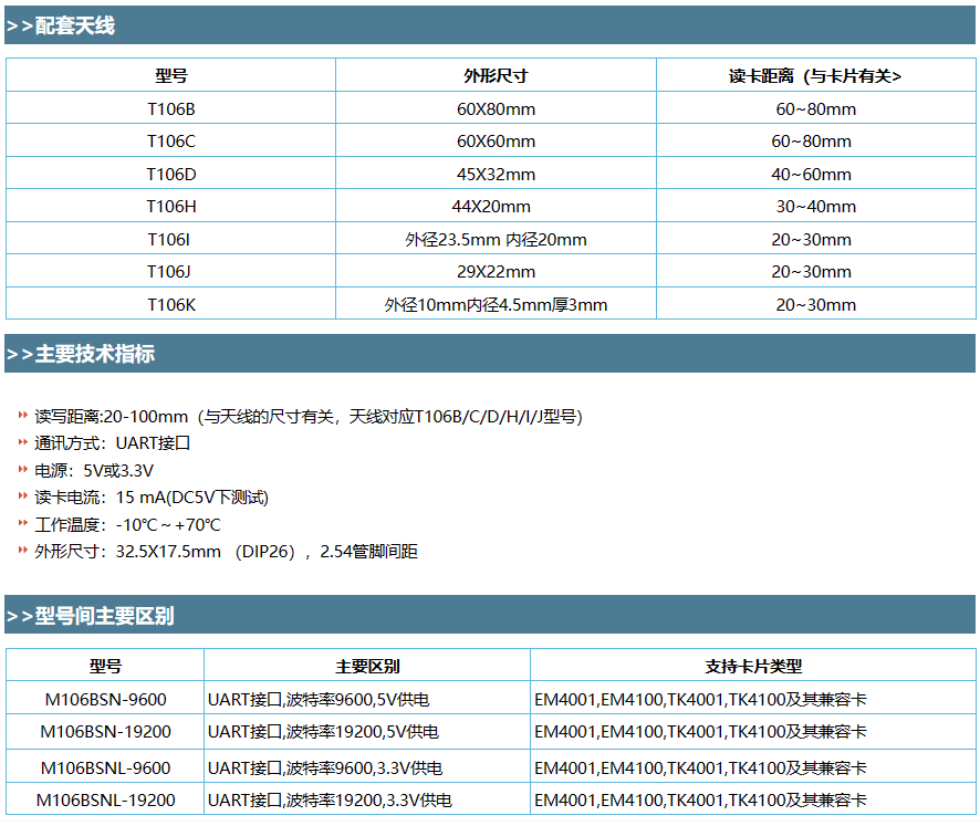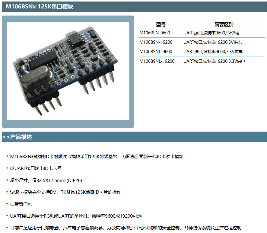 支持卡片 | EM、TK及其125K兼容ID卡片 | ||