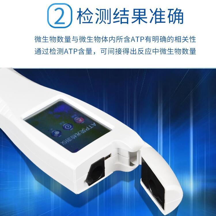 操作采用生物化学反应方法检测ATP含量,ATP荧光检测仪基于萤虫发光原理,利用“荧光素酶—荧光素体系