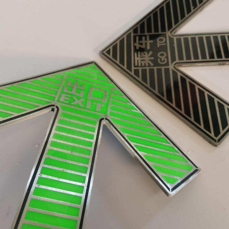 该标识采用304不锈钢为基材,先用激光切割裁好板材外形(可定制各种规格尺寸),表面图文电腐蚀下沉,再填充蓄光材料而成。由于基材厚且雕刻深度1mm以上,所以发光亮度比pvc材质、钢化玻璃等都要高出很多,是蓄光消防安全标志中亮度比较好的产品之一。