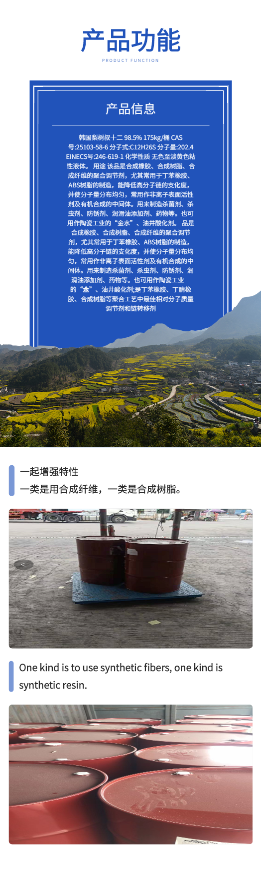 叔十二烷基硫醇TDM韩国梨树蓝桶叔十二硫醇进口