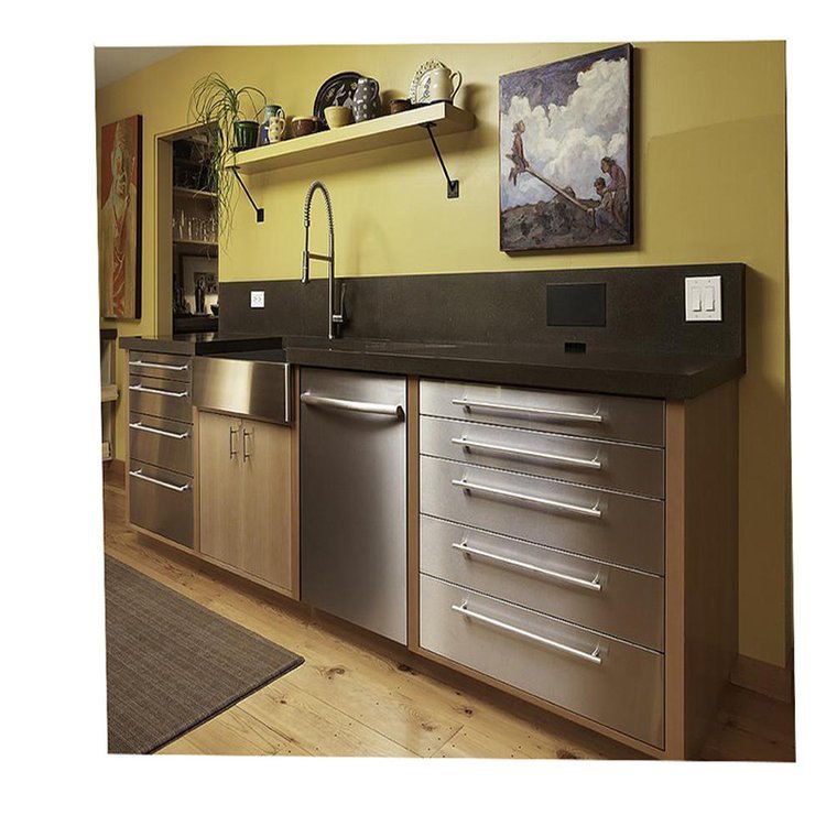 不锈钢厨柜 L型整体橱柜 现代简约开放嵌入式 厨房装修柜子灶台柜
