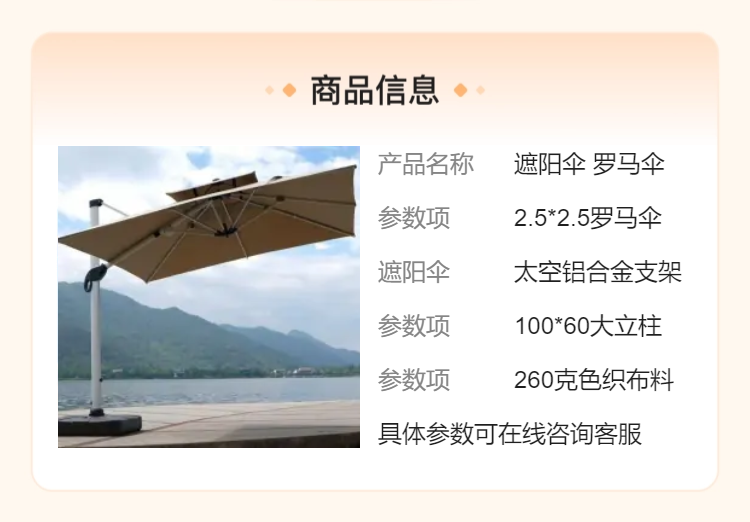 户外休闲遮阳伞高端庭院遮阳罗马伞是家人乘凉休闲必选的