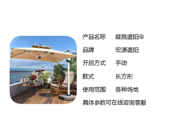 宏亿源户外用品供360度旋转庭院伞可调节倾斜角度防紫外线遮阳伞