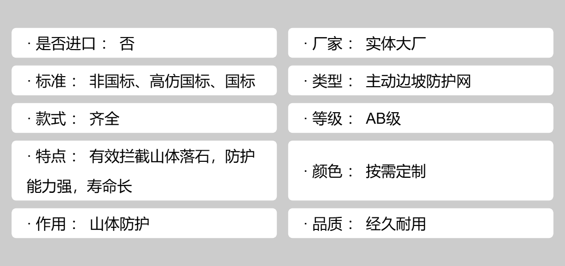类型 | 主动边坡防护网 | ||