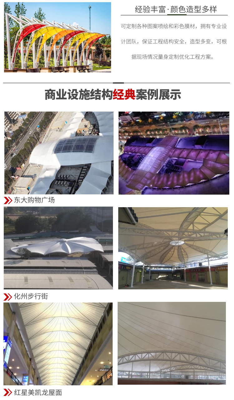 使用场所 | 商业建筑体育场馆展览中心商业综合体购物中心展馆膜结构机场高铁站 | ||