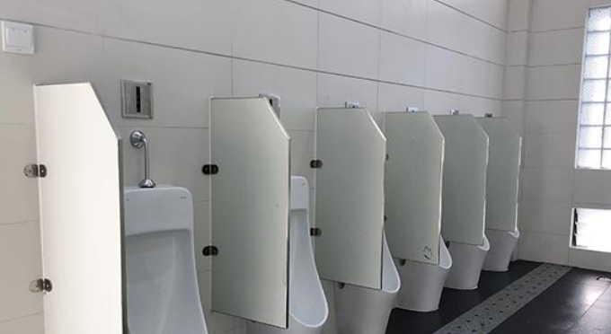 4. 地面采用防渗、防滑的材料,男女厕间门入口处应设置视线屏蔽,厕位之间应设置隔板和厕所门,门及隔板材质应采用防潮、防划、防画及防烫材质。