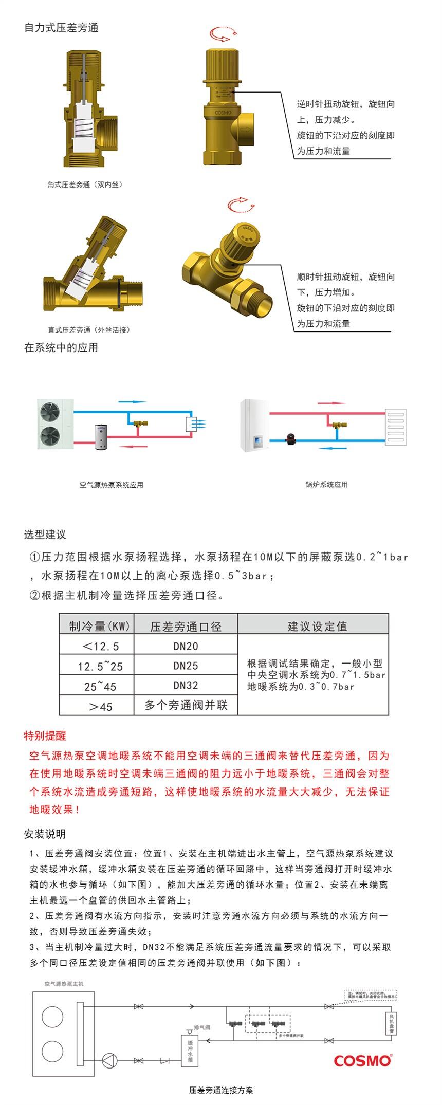 科斯曼cosmo自力式压差旁通阀可视刻度水平阀