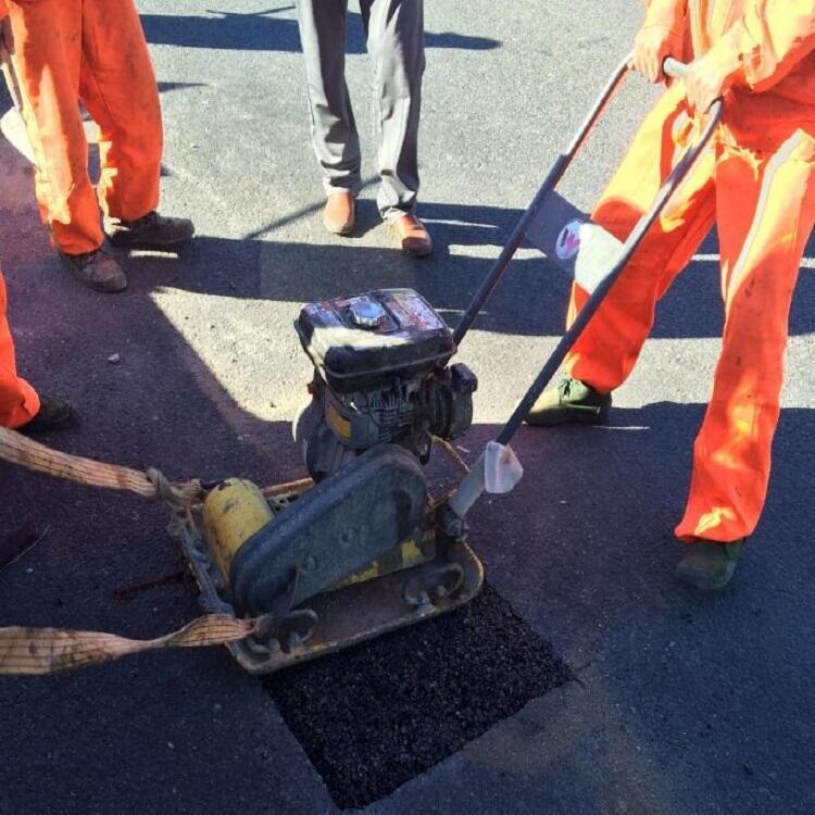 顺建兴业牌冷补料进行路面坑槽修补时无需粘层油.备料可随用随取,不需要重型施工机械,可根据路面的不同修补情况采用冲击压实、人工压实或汽车轮胎碾压即可。并且用冷补料修补过的区域无需封闭交通,可立即通车,大大因道路修补施工而造成的交通压力。