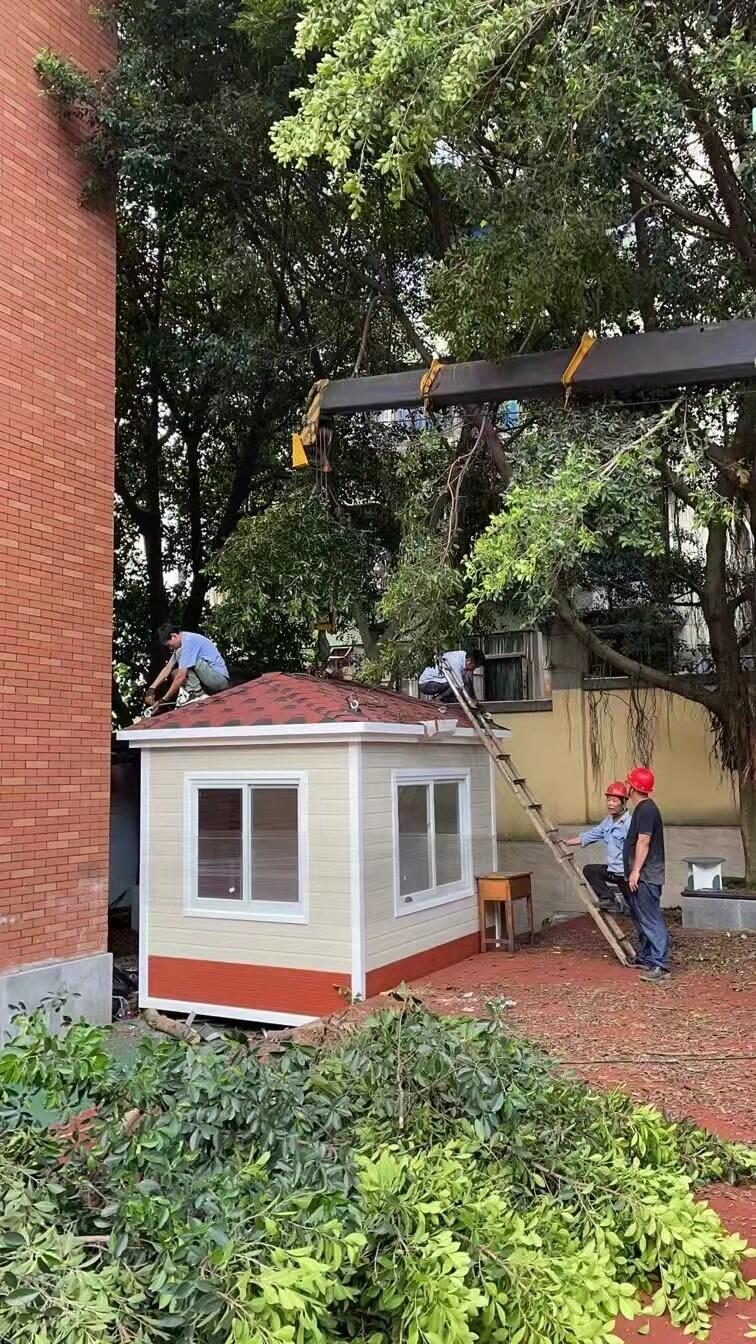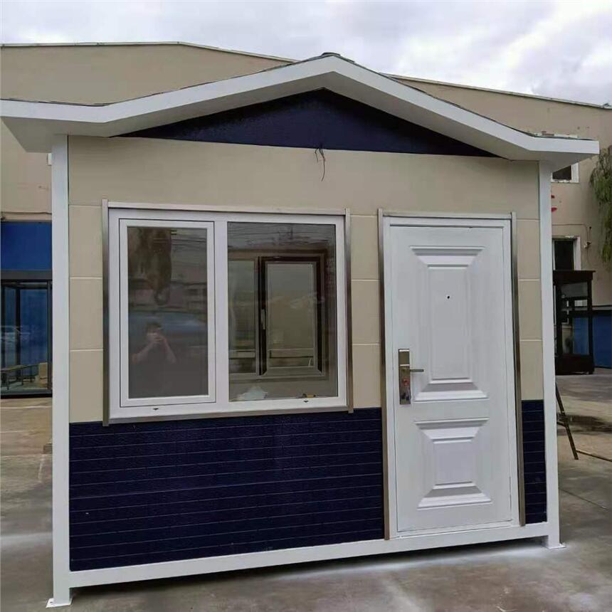 钢结构岗亭的承重结构均为框架型钢结构,整体结构构件选材和焊接符合标准,**钢骨架结构,壁厚均在2mm以上,经防腐处理,吊装或铲装移动时,可保证产品牢固性。3、亭内地面为统一平面,内墙及屋顶同样采用钢结构荚芯板,防火、防腐蚀且便于清洁。外墙采用钢结构荚芯板,色彩稳定、雨水冲喷洗即可除尘,不剥落;抗紫外线辐射和水汽酸碱侵蚀,不宜老化;具有韧性、不易损坏,隔音隔热性能强,抗外力冲击不易碎裂损坏;自熄阻燃达到难燃级标准。通常来说,单人使用的岗亭以1.2×1.5×2.34m或1.5×1.5×2.35m居多,虽然也有*小一点的尺寸(例如:1.2×1.2×2.35m),但是尺寸过小的话,会造成工作人员在岗亭内觉得压抑,不适合长时间留守在岗亭内。双人使用的岗亭尺寸通常为1.5×2.0×2.35m,以此类推,2.0×2.0×2.4m的岗亭适合三人使用,而2.0×3.0×2.5m的岗亭则适合4-5人使用,*大尺寸的岗亭就要根据安装场地大小来定,通常除了要考虑亭体的尺寸大小外,还要考虑顶盖延伸出来的位置,以免场地过小导致岗亭无法摆放。