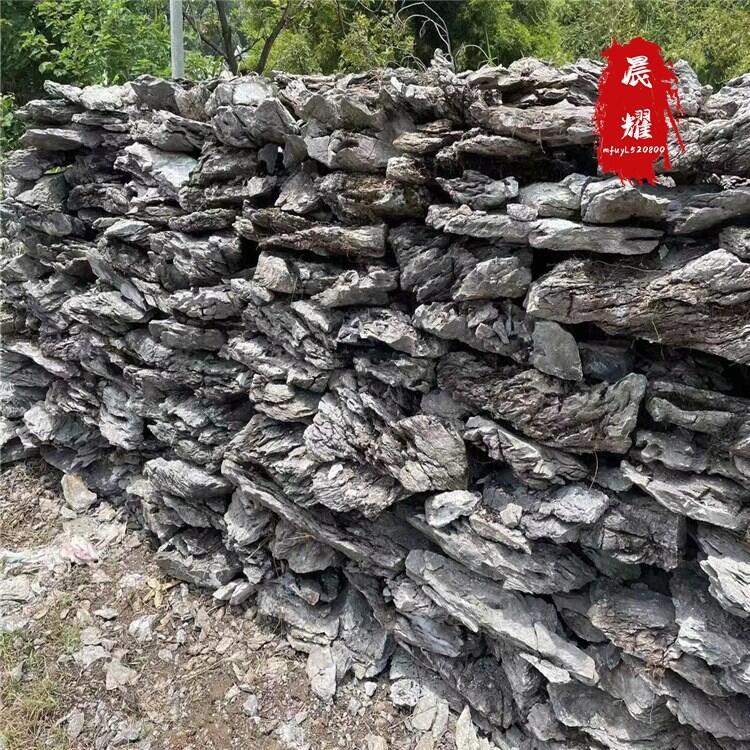 英石叠石:重在15kg到5okg,规格2o公分到1oo公分,颜色多为黑色、深蓝色、深灰色间白,特点为造型横形、薄,纹路清晰。
