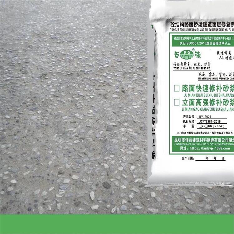 昆明市佰意建筑材料制造有限公司平面快速高强修补砂浆:主要生产销售百强牌混凝土外加剂、砂浆外加剂、奈系高效减水剂、聚羧酸盐高性能减水剂、水下不分散混凝土絮凝剂、混凝土泵送剂、混凝土膨胀剂、高强无收缩灌浆料、桥梁专用支座灌浆料、预应力管道压浆剂、预应力管道压浆料、桥隧专用修补材料、混凝土道路修补材料、隧道注浆加固材料、混凝土回弹增强剂、防水材料、高效堵漏王、混凝土界面剂、砂浆王、混凝土有机防水剂、早强高效减水剂、混凝土防冻剂、混凝土脱模剂、混凝土喷射速凝剂、锚杆锚固剂、混凝土钢筋阻锈剂、混凝土抗折增强剂、混凝土抗裂抗渗防水剂、混凝土抗裂防水剂、混凝土抗渗防水剂、聚合物砂浆系统、混凝土养护剂、混凝土保护剂、混凝土防腐防火材料等系列产品。云南昆明支座灌浆料 来宾支座灌浆料