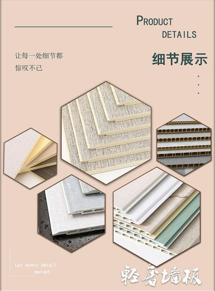 嘉美集成墙板是一种新型装饰材料,具有美观、耐用、无需维护等特点,可以用来装饰和保护室内外墙面,给您的居住环境带来更多的温馨和舒适。期待更多的客户前来采购,为您的家庭装饰增添更多的色彩!