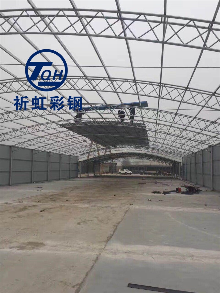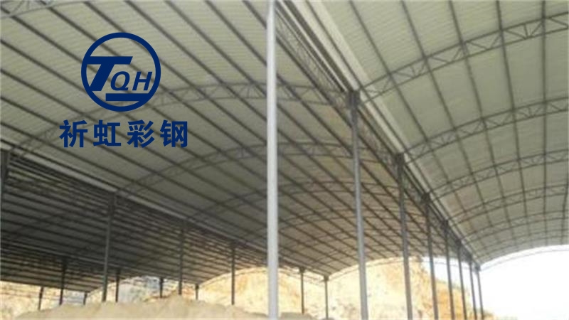 祈虹彩钢生产厂家加工生产的钢筋加工棚的搭设不要满足规范和使用要求,而且防雨、防风、防砸、整洁美观,并挂安宣传标语。钢筋加工区地面应进行硬化处理。而且搭设在塔吊回转半径和建筑物周边的钢筋加工棚设置双层硬防护棚顶。
