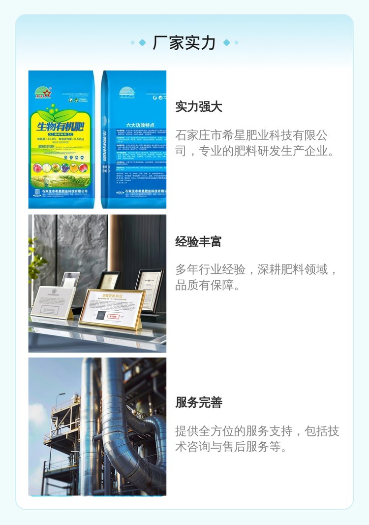 希星肥业主营有机肥、生物有机肥、微生物菌剂,专用肥等,常年承接项目采购,高标准农田建设,土地改良等供肥采购,资质齐全,可提供肥料登记证,可授权,更有招投标团队辅助中标工作,全国各地多家分厂,产量大,供货快,买肥料选大企业才放心,购肥合作可拨打经理电话咨询了解!