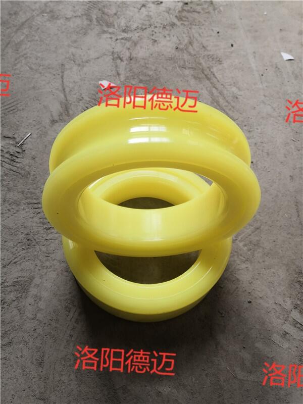 洛阳德迈生产的猴车、绞车聚氨酯轮衬是为增加钢丝绳的使用寿命而生产的矿山专用产品,该系列产品具有极高的耐磨性能,极低的磨擦系数,优良的自润滑性,不用注油,在恶劣条件下使用不易卡死,抗阴燃,耐老化,耐化学(酸、碱和有机溶剂)的腐蚀,机械性能优异,重量轻,安装方便,不用维修等特点,根据用户提供尺寸加工定制。