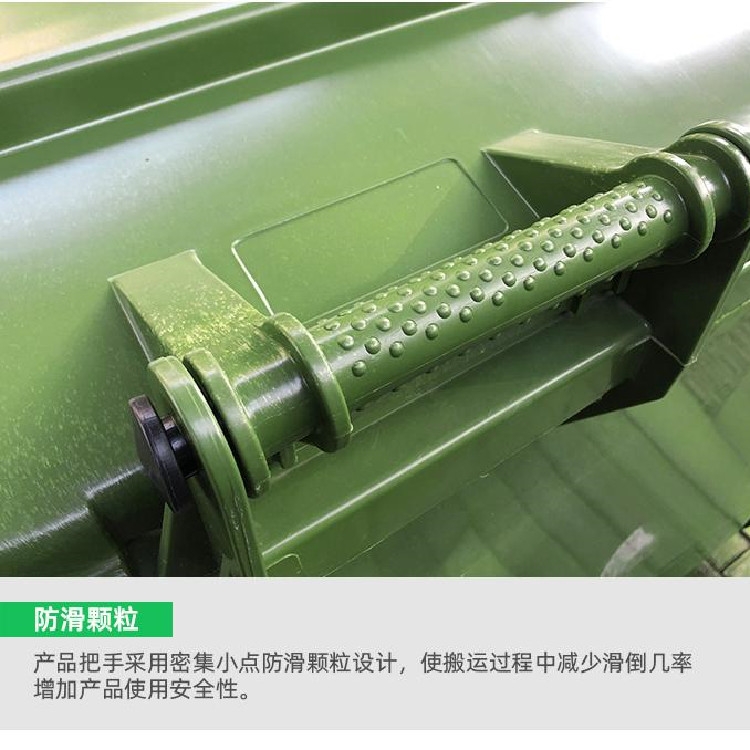 1、采用新的注模技术,赛普垃圾桶,特殊的结构设计,高密度聚乙烯(HDPE)一次注模成型,确保坚固耐用,不变形,符合环保要求。