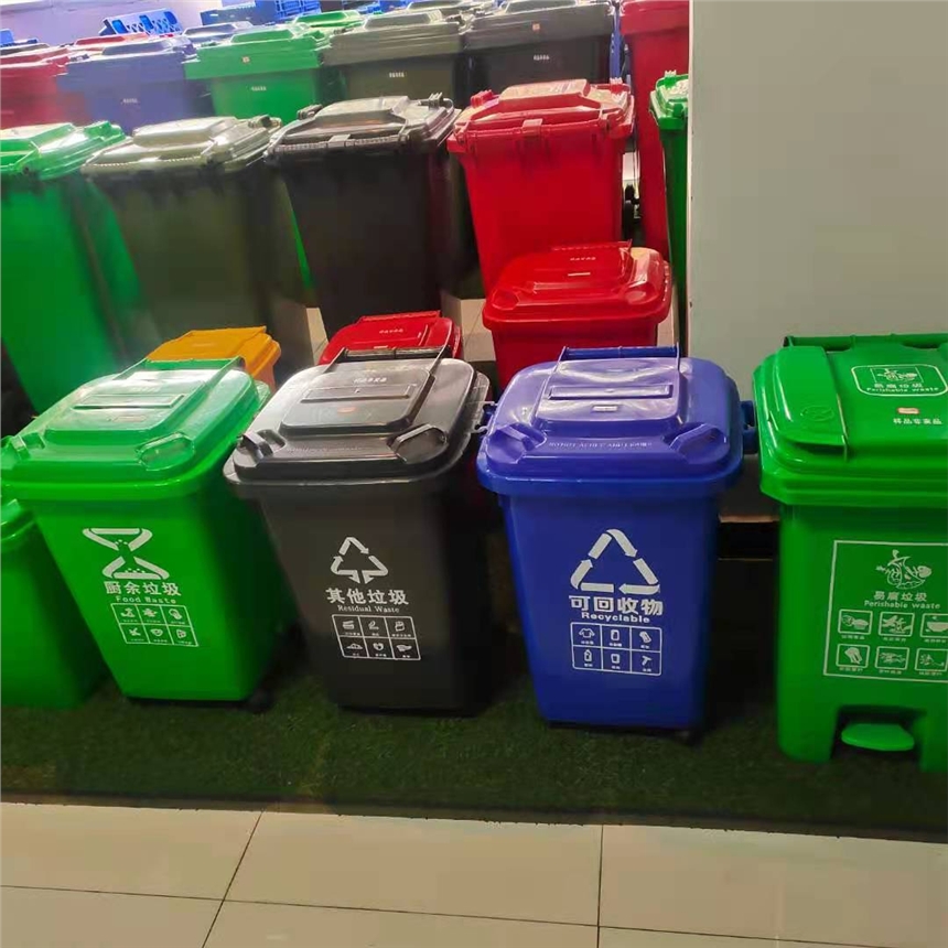 塑料垃圾桶厂家,环卫垃圾桶厂家,户外垃圾桶厂家,厂家供应赛普240L环卫垃圾桶 室外垃圾桶小区物业专用大垃圾桶,产品无毒无味,无钉无刺,耐酸碱,防霉变,防潮,防蛀,无须修理,可循环利用。环卫设备发展趋势,具有抗强压,抗冲击,密封式存放、方便移动等特点。  重庆赛普垃圾桶采用全新的高密度聚乙烯,按标准设计生产一次注塑而成,无添加任何废料及石膏成份,加原料,不易褪色,手感好,光泽度好,易清洗,美观耐用,使用周期长。     2、产品无毒无味,无钉无刺,  耐酸碱,防霉变,防潮,防蛀,无须修理,可循环利用。符合环卫设备发展趋势,具有抗强压,抗冲击,密封式存放、方便移动等特点。     3、该系列产品结合了欧美现代化的设计风格,在外观上更加符合现代化城市市容建设的需要,除改变老式产品的不足外,更具实用性和装饰性;以环保绿色为主,还有蓝色和橘红色等,选用进口母粒、电脑配置染色,经重新造粒和充分搅拌后注塑,色泽凝重,颜色鲜艳保持时间长,增强了抗冲击性。     4、可挂车,可移动、脚踏式翻盖功能避免了手与容器污染物直接接触,更可以实现直接与压缩垃圾车对接作业,投放垃圾方便、密封性好、移动轻便、容易清洗、减少了二次污染和病菌的传播,符合当代环保的要求。分类垃圾桶  (一)可回收物是指适宜回收循环使用和资源利用的废物。  主要包括:  1.纸类:未严重玷污的文字用纸、包装用纸和其他纸制品等。如报纸、各种包装纸、办公用纸、广告纸片、旧杂志等;  2.塑料:废容器塑料、包装塑料等塑料制品。如塑料袋、塑料瓶、泡沫塑料、一次性塑料餐盒餐具、硬塑料等;  3.金属:各种类别的废金属物品。如易拉罐、铁皮罐头盒、铅皮牙膏皮等。  4.玻璃:有色和无色废玻璃制品。  5.织物:旧纺织衣物和纺织制品。  (二)不可回收物指除可回收垃圾之外的垃圾。常见的有在自然条件下易分解的垃圾,如果皮、菜叶、剩菜剩饭、花草树枝树叶和用过的茶叶等。  (三)有毒物质,如废旧电池、废荧光灯管、水银温度计、废油漆、装过化妆品的盒子、罐子和过期药品等。