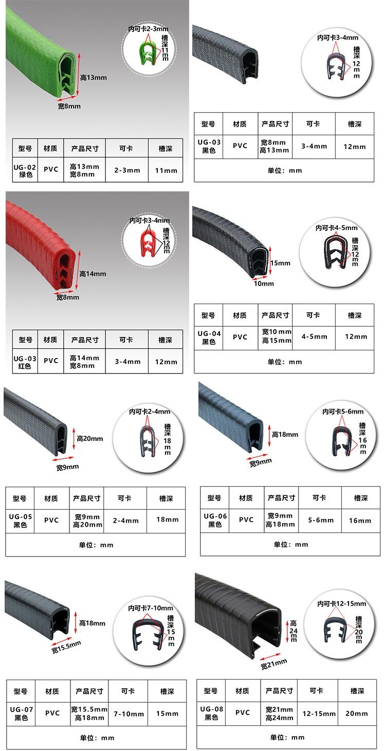U型彩色装饰密封条 包边密封条 滑板封边防撞条