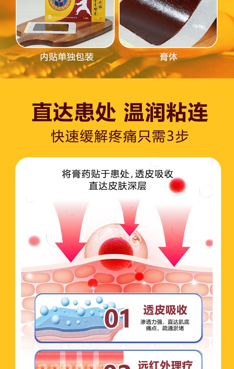 功效 | 缓解颈椎病、肩周炎、骨质增生、腰椎间盘突出、风湿关节炎、跌打损伤引起的不适 | ||