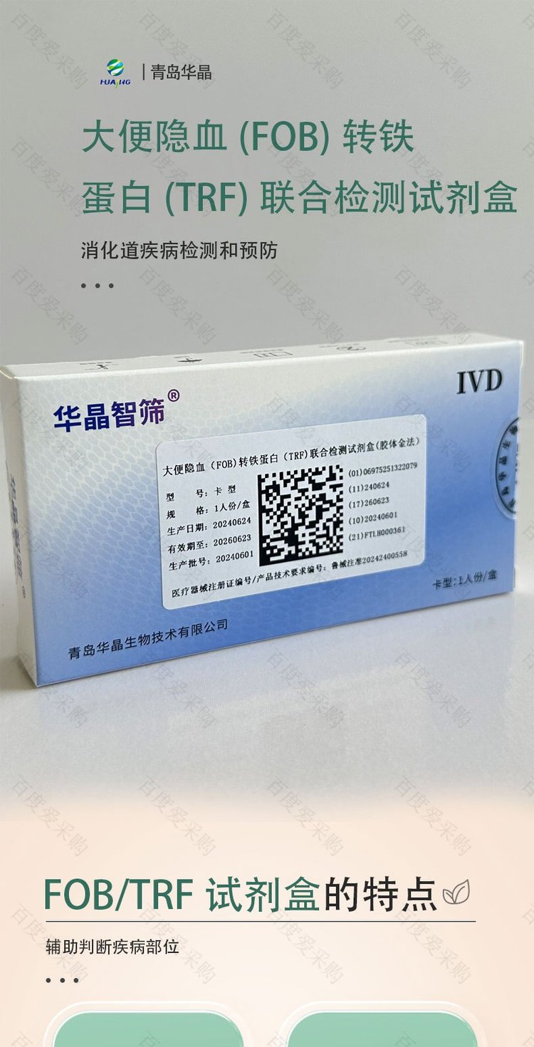 华晶 大便隐血(FOB)/转铁蛋白(TRF)联合检测试剂盒(胶体金法) 品牌 | 青岛华晶 | ||