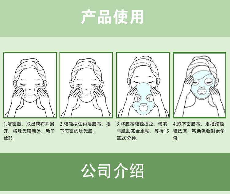 面膜是护肤品的一个类别,用于皮肤补水,也具有保湿、滋润、营养、改善外观、深层清洁等多种功能。 贴布式面膜:贴布式面膜包括含凝胶无纺织物贴布式和浸渍式无纺织物贴布式面膜两种形式。含凝胶无纺织物贴布式是在无纺织物上涂附一层凝胶型制剂,剪裁成面部形状,然后密封在包装内。浸渍式无纺布面膜是常用的,是用面膜液浸渍无纺布制成。