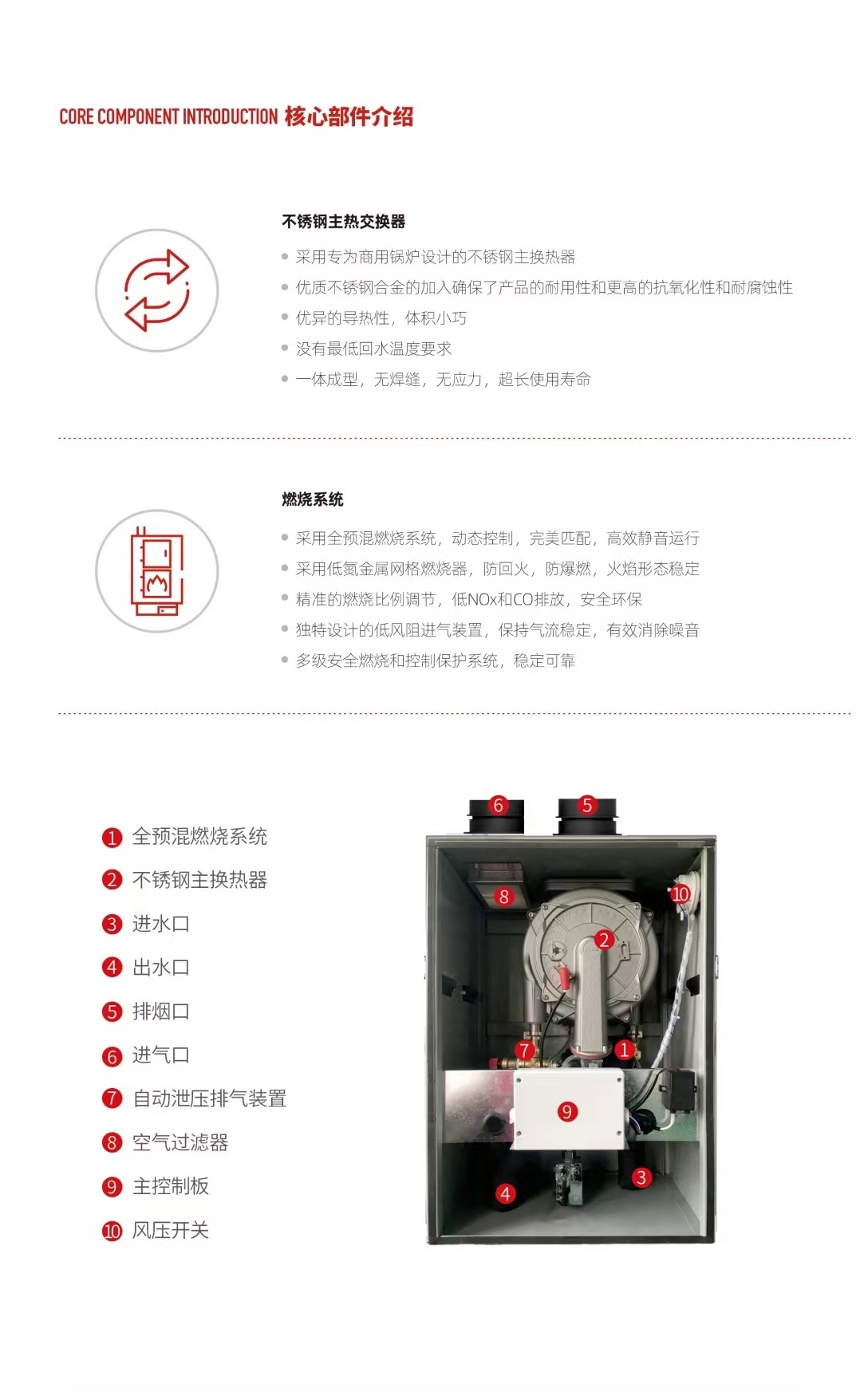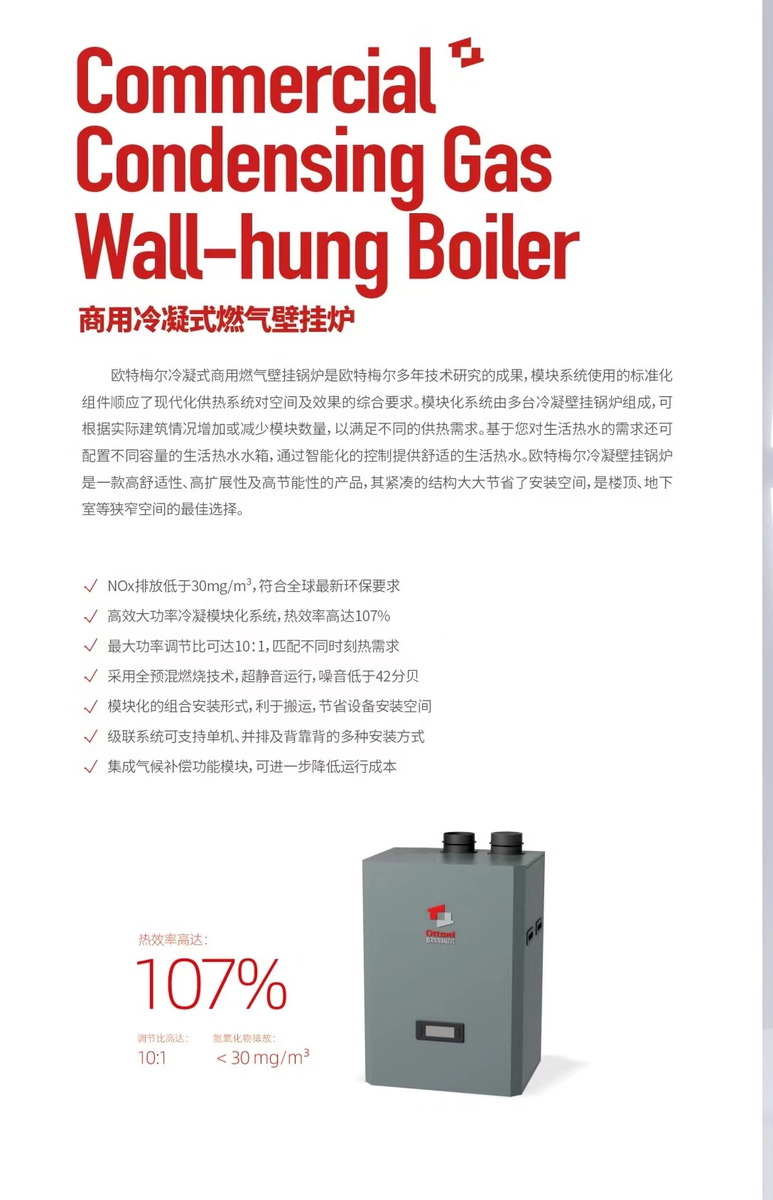 欧特梅尔 冷凝式商用燃气壁挂炉 型号CBF99 功率99KW 热效率107%