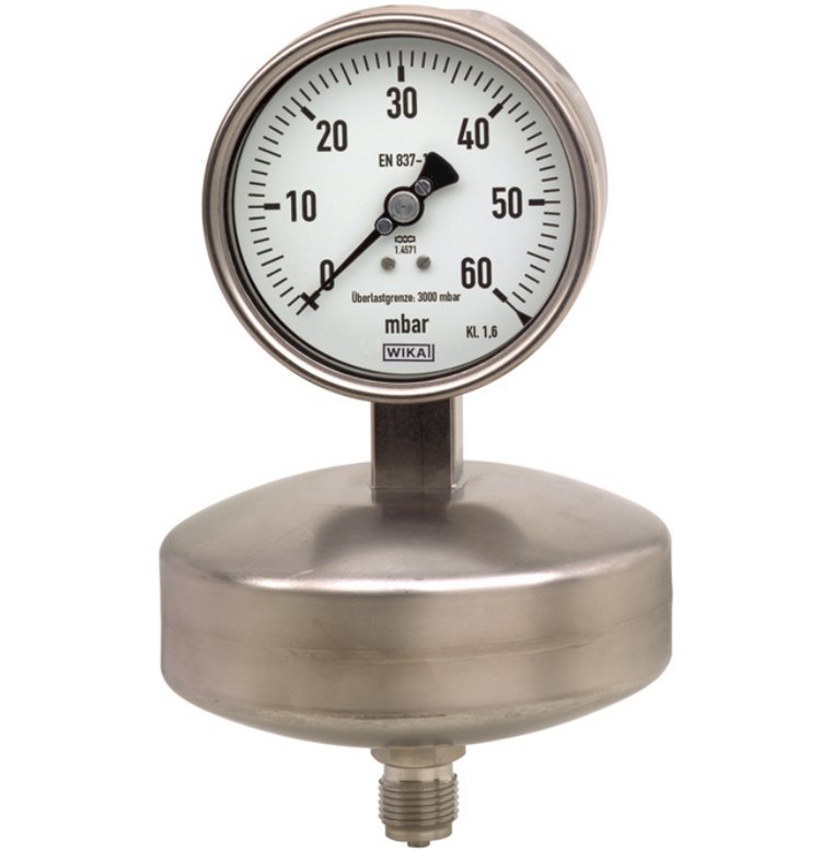 膜盒测量原理尤其适用于低压条件。增压时,膜盒元件与入射压力成比例的膨胀会传输至机芯,并会进行指示。