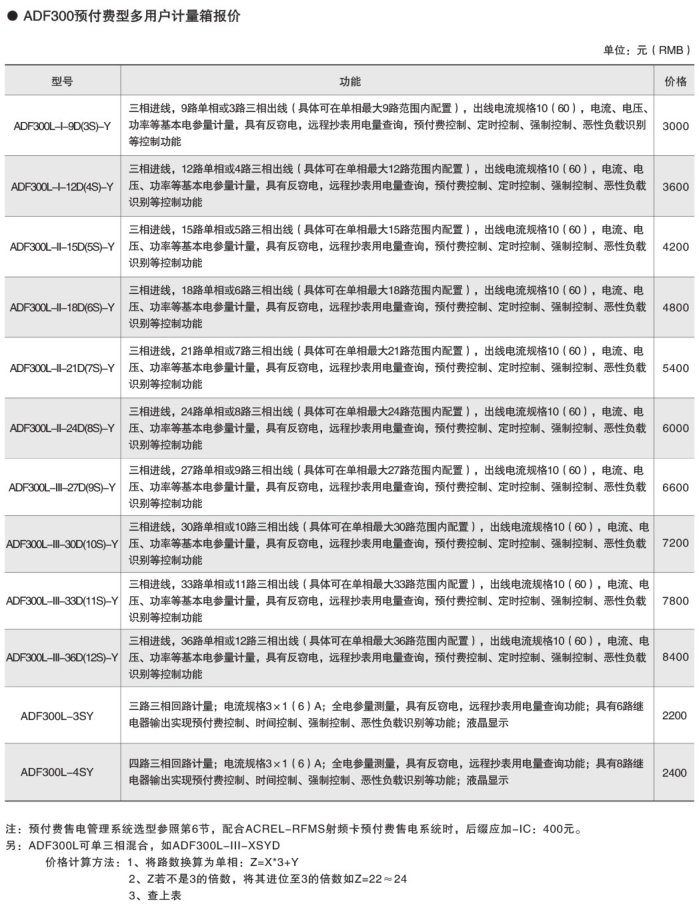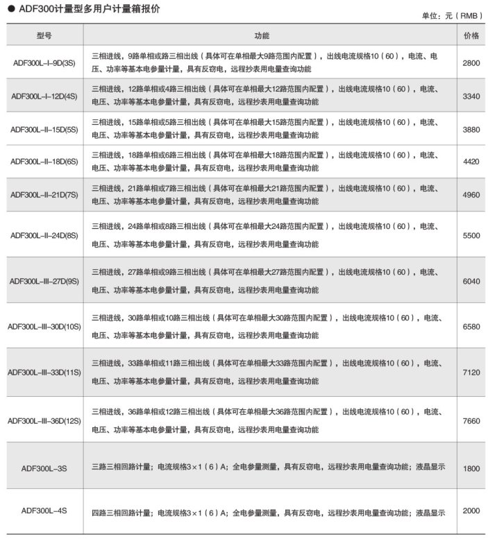 ADF300系列多用户计量箱是一种电子式智能化多用户电能表,设计采用一户一计量方案,具有计量准确度高、户与户之间计量互不干扰、集中安装、集中管理优势。可以同时计量12户三相、36户单相、单/三相回路混合用电状况。