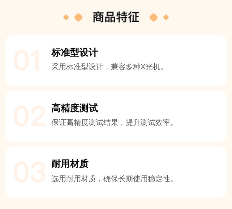 设计特点 | 标准型设计,兼容多种X光机 | ||