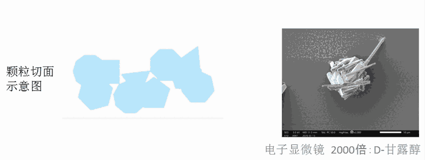 通过D‐甘露醇进行喷雾冷冻干燥造粒时的粒度分布,SEM观察数据