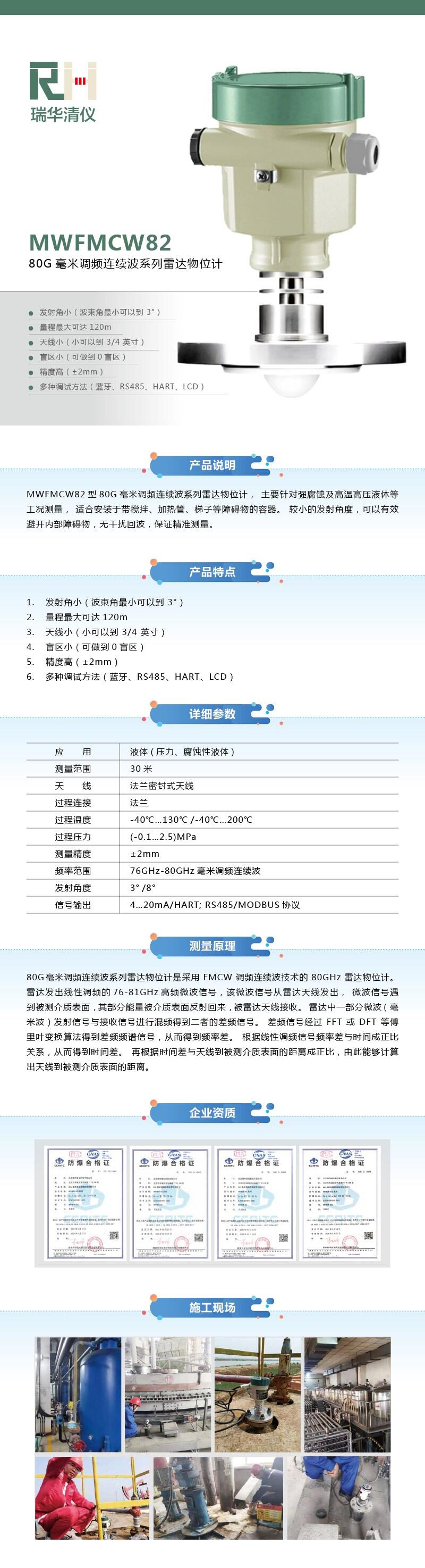 MWFMCW82  80G毫米调频连续波系列雷达物位计