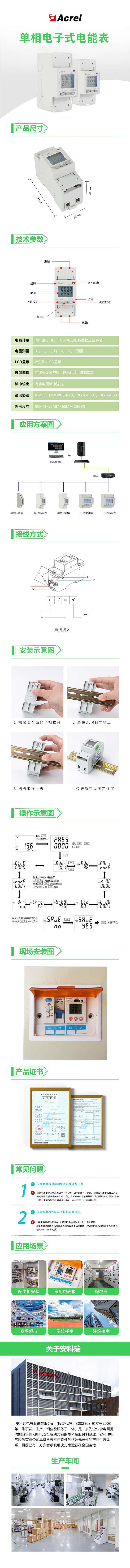 安科瑞ADL200-F单相电能计量表 单相电参量 复费率统计 导轨式安装
