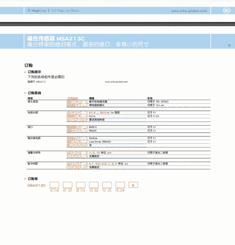 SIKO MSA213C 传感器MSA213C-0023 磁尺MBA213