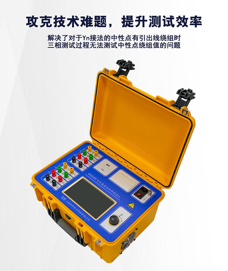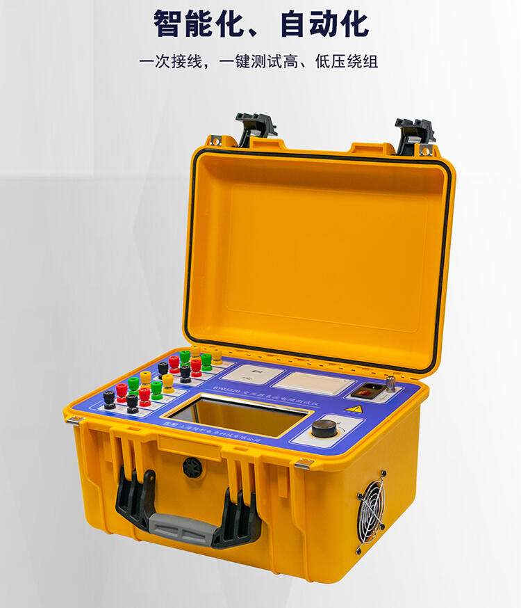 变压器的直流电阻是变压器制造中半成品、成品出厂试验、安装、交接试验及电力部门预防性试验的必测项目,能有效发现变压器线圈的选材、焊接、连接部位松动、缺股、断线等制造缺陷和运行后存在的隐患。为了满足变压器直流电阻快速测量的需要,我公司利用自身技术优势研制了变压器直流电阻测试仪。该仪器是集助磁法测试、三相测试(Yn,Y、△)和消磁功能于一体的新一代快速测试仪,是测量大型电力变压器直流电阻的理想设备。屏幕采用真彩色大屏幕高分辨率液晶显示屏,触控加飞梭旋钮操作,方便现场使用。具有中文菜单提示功能,操作简便直观,一次接线完成所有直阻测试项目,测试速度快,准确度高,量程宽。