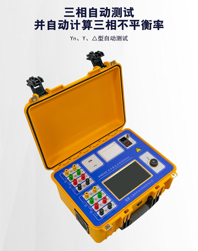 1 对于Yn型、Y型和△型绕组均可采用三相测量方式进行测试,并计算出三相不平衡率。