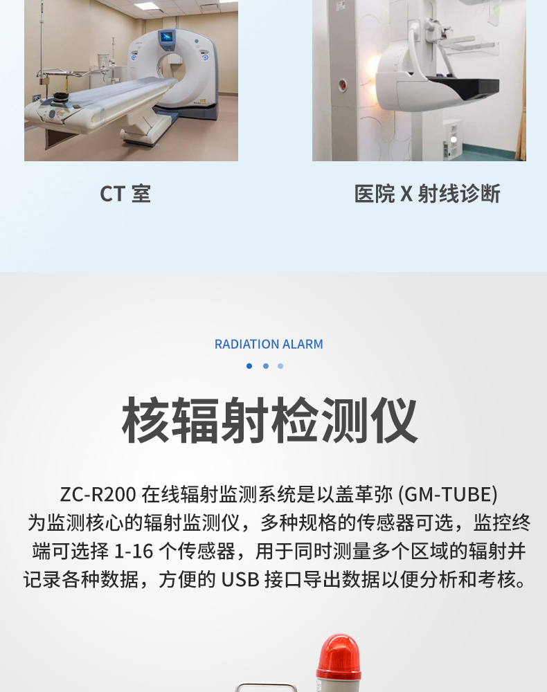 ■各探头具有两种报警模式 (上限报警/下限报警),灵活适用于各种辐射安全报警场所。