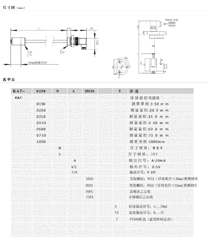 液位温度传感器/液位计KAT-0330NAM27A