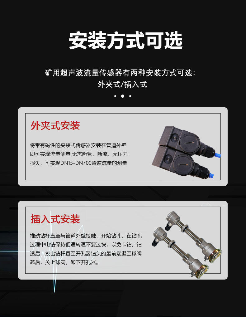 矿用管段流量计、煤矿井下管段液体流量计、井下泵房矿用流量仪表流量传感器是一种高精度的流量检测仪器,广泛应用于矿山行业中的水力输送和矿浆输送等领域。