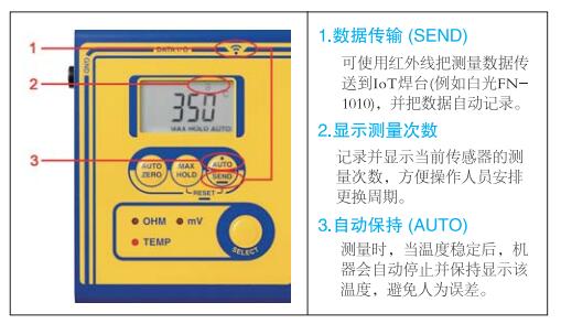●设有「MAXHOLD」功能,显示屏可以显示焊咀MAX温度记录。