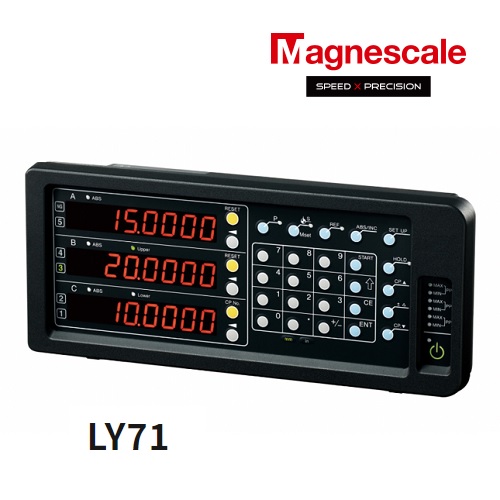 多功能数显器LY71,公/英制转换,绝对/相对位置检测,预置位置功能,直径显示,弧度等分功能,线性误差补偿,停电记忆、计算、峰值锁定、复位、预置、数据存储、报警输出、零位输出、线性误差补偿等功能。根据用户不同的要求,可以同时配用BCD输出板/符合点输出接口板。通过其输出功能来控制机床的行走(定位)尺寸,从而保证被加工工件的质量,提高产品的合格率。输出扩充板LY71-B,LZ71-KR.因应测量与控制可选择多种不同的替换扩充I/O基板之多功能数显器。适用于多种领域的量测和控制.需要的输出板可加长