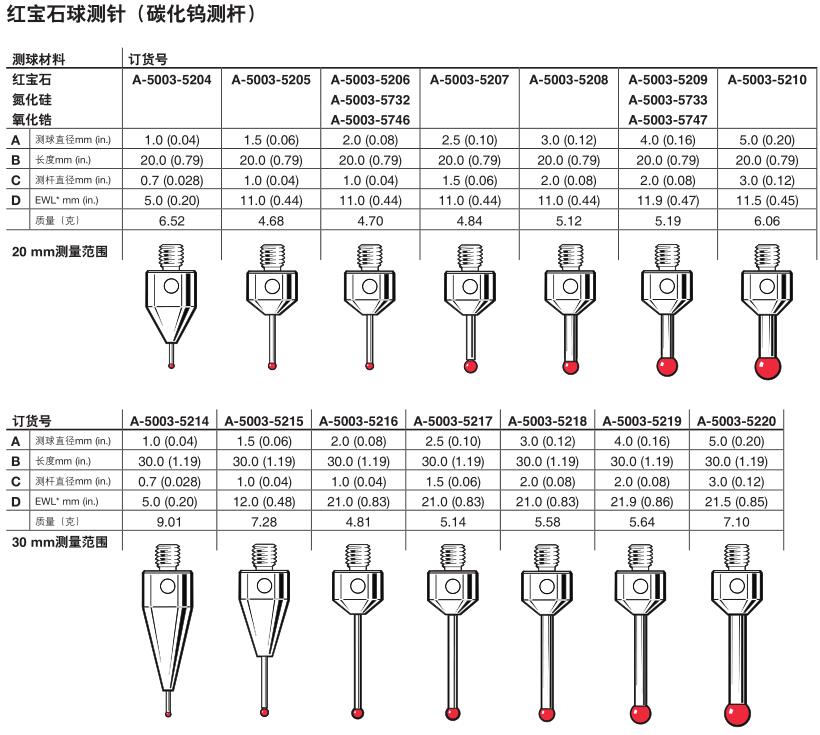 这是zui简单的一种测针,采用高球度的工业红宝石测球和备选的各种测杆材料。