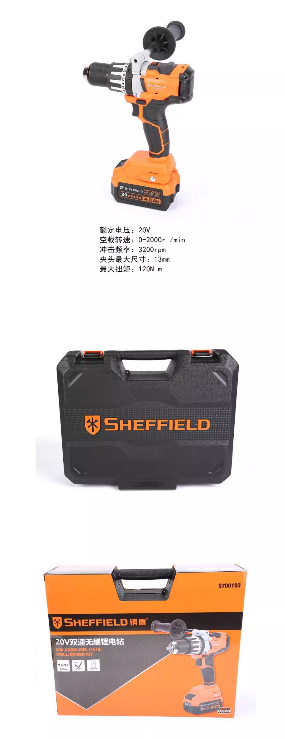20V双速无刷锂电钻S700103钢盾SHEFFIELD