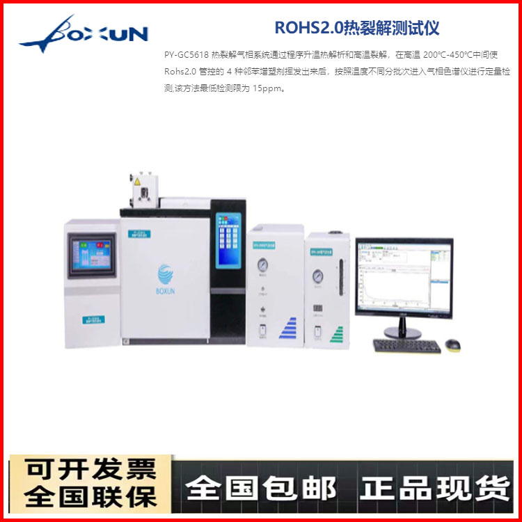 按RoHS2.0检测标准,生产企业原材料快速筛查、物料自检、内部质量控制、客户验厂审厂等都需要购买相关设备(常规配置需要的仪器:GCMS+BXR-606光谱仪),但是采购这些设备动辄上百万,是很多企业都感到巨大压力,而企业在原材料筛查有不能不做,如果不做筛查,产品生产将会埋下巨大隐患,企业无法把控自己生产的产品是否符合标准;金谷科仪根据企业内部筛查的重要性和购买设备所需巨额投入这两大痛点,专门针对Rohs2.0中4种邻苯的快速筛查需求开发出一套全新解决方案: PY-GC5518热裂解脱附邻苯快速筛查解决方案,这套PY-GC5618系统是在PY-GC5518基础上升级而来的更加先进高效的热裂解脱附仪,除了能满足RoHS2.0的邻苯检测需求外,还可以扩展TOTM(偏苯三酸三辛酯)、DMF(二甲基甲酰胺)、苯系物(苯、甲苯、二甲苯)、油墨中17种VOCs、有机溶剂残留、高分子材料、材料中挥发性有机物等检测项目,功能强大!