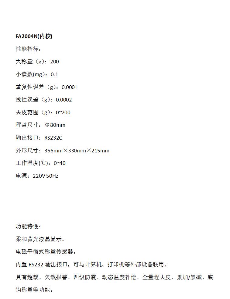 菁海实验室万分之一电子分析天平FA2004N(内校)内置校准防风防震科研实验定量分析
