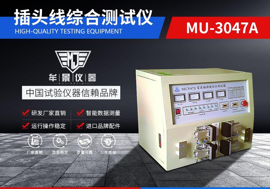双头电源插头线综合测试仪,对AC电源插头线所有电气性能如:极性导通、短路断路、绝缘耐压、漏电、外压露铜以及相对长度等项目均进行自动测试。合格产品自动标识且有温控器加热顶针顶出,遇不良品则仪器报警且指示故障所在。既快速还能在品质上给使用者足够信心,防止漏检或混入不合格品,是广大电源插头线厂家理想的设备。符合标准:UL、VDE、CCC、JIS、CSA、KEMA。