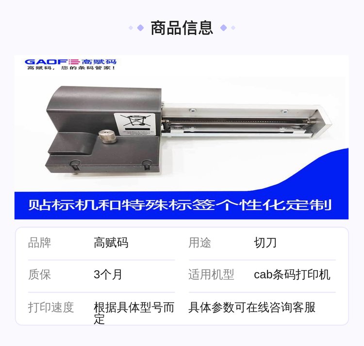 兼容性 | 适用于多种cab条码打印机型号 | ||