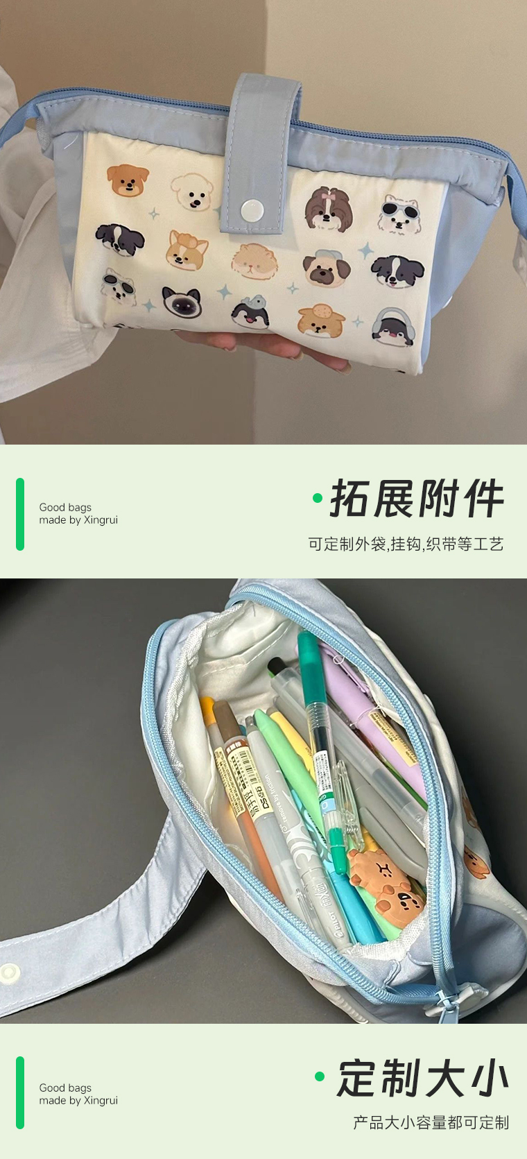 兴瑞笔袋收纳包定制LOGO数码印拉链闭合办公便携式大容量收纳袋